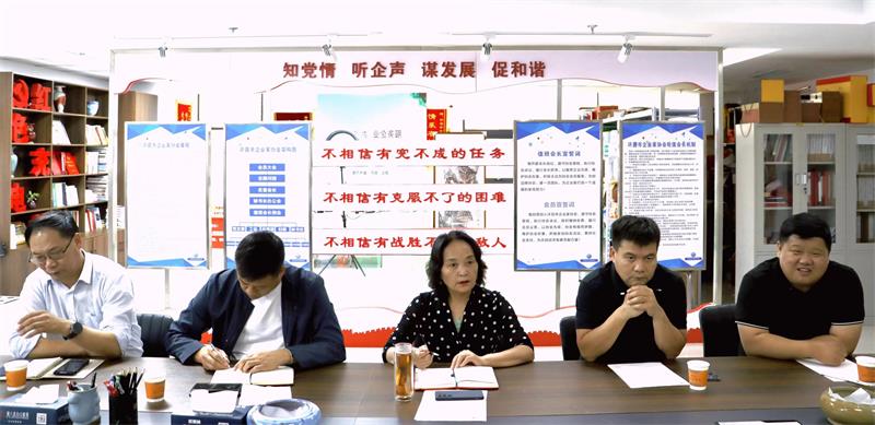 一行蒞臨協(xié)會(huì)調(diào)研指導(dǎo),秘書(shū)長(zhǎng)黃玉霞代表協(xié)會(huì)歡迎馬局長(zhǎng)到訪,執(zhí)行會(huì)長(zhǎng)張建濤、副會(huì)長(zhǎng)單位韋永才、李俊、胡方坤等參加座談交流。 馬局長(zhǎng)與幾位企業(yè)家進(jìn)行了深入細(xì)致的交流,了解企業(yè)面臨的發(fā)展困境及訴求并積極探討解決辦法