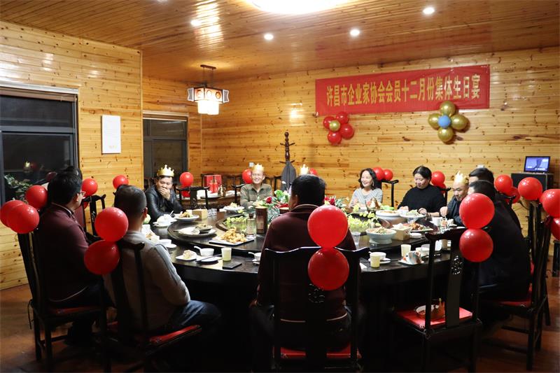 12月9日晚上,許昌市企業(yè)家協(xié)會12月份集體生日宴,在陳家小院溫情舉辦。秘書長黃玉霞、執(zhí)行會長張建濤、十二月份值班會長范文彥等共20位協(xié)會會員相聚共度生日宴。